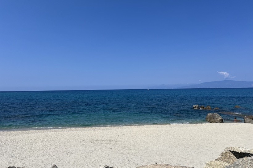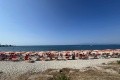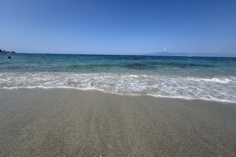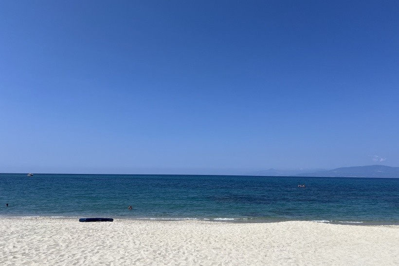 Cesta na pláž v pohodě, průchod pod vlakovou tratí, cca 150 metrů. Na pláži vždy dostupný deštník, jedno lehátko a jedno sedátko na pokoj. Pláž čistá, přístup kamínky/písek. Někde větší kameny, ale jsou vidět. U pláže bar k hotelu, drinky levnější o 1 euro než na hotelu.