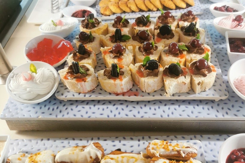Strava pestrá, veľký výber mäsa, morských plodov, príloh, šalátov, čerstvého ovocia a dezertov. Personál vždy usmiaty a pohotový. Jediným sklamaním bola tvrdá slanina na raňajky. Inak jedlo výborné. Vyskúšali sme aj 2 z 3 a la carte reštaurácii a odporúčam všetkými 10timi, treba však myslieť na dress code, pánov s krátkymi nohavicami otočia vo dverách.