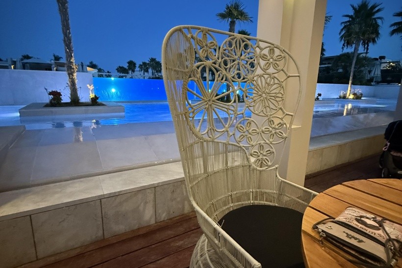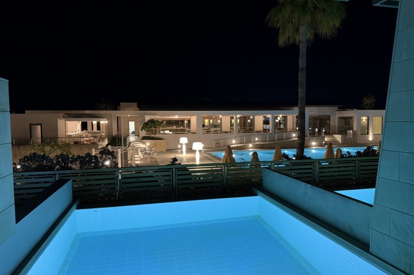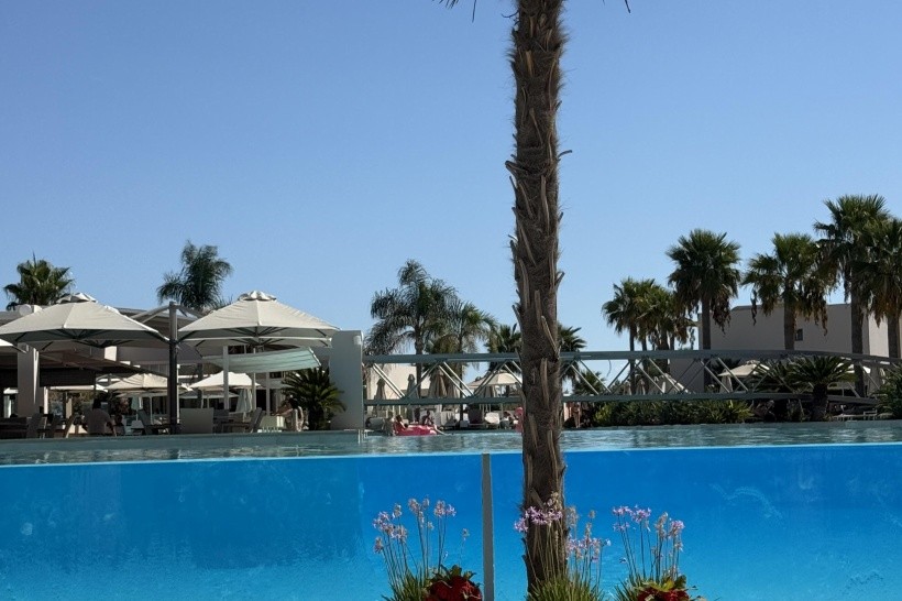 Před restaurací je příjemný bazén s lehátky a výhledem na moře. Pláž je štěrkovitá, v místě hotelu poměrně úzká, snadno přístupná z centrální cesty mezi domy v parku.
