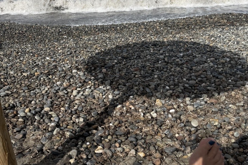 Pláž snadno dostupná, oblázková s poměrně velkým spádem do hloubky. Již po pád krocích od břehu byla větší hloubka. Často zde byly větší vlny.
