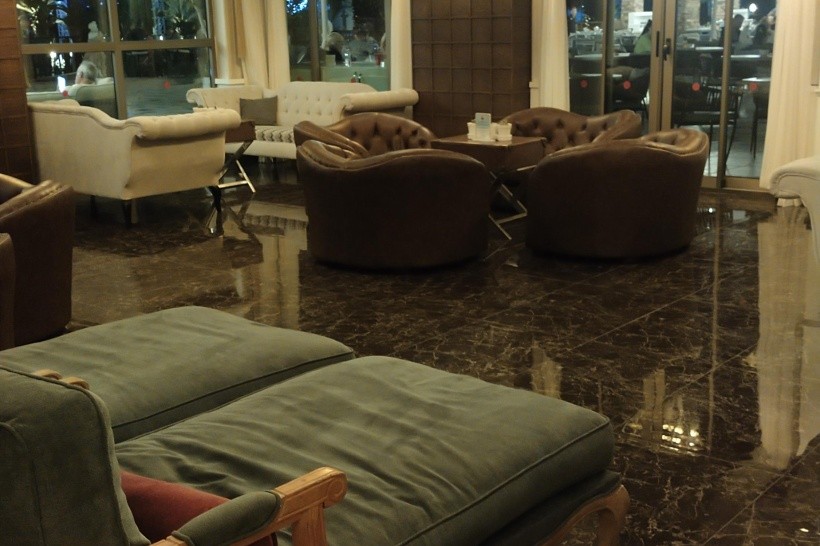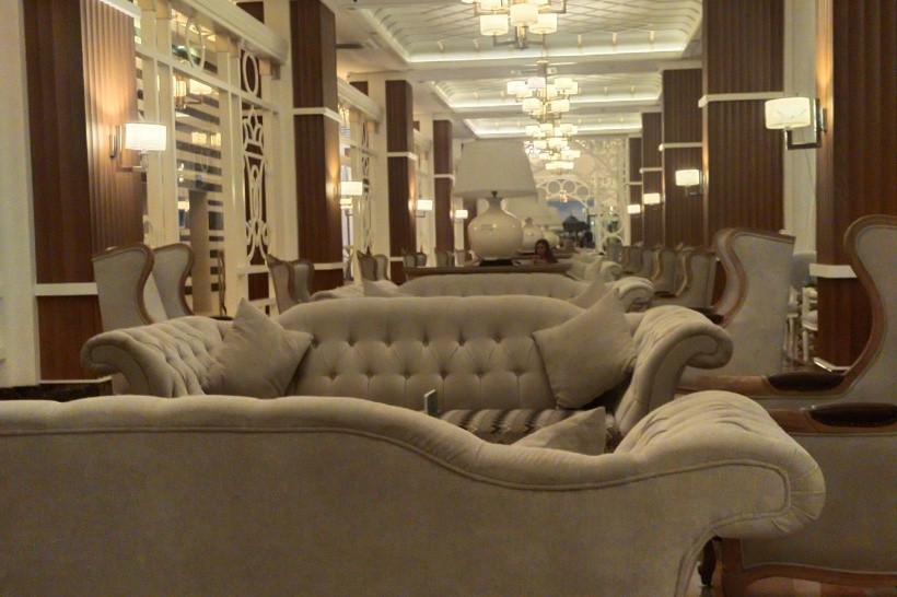 Hotel je prostě nádherný, s působivou výzdobou – elegantní, stylovou a velmi dobře udržovanou, a navíc s nádhernou vůní. Rozlehlý prostor nabízí klidné místo pro relaxaci na pohodlných pohovkách uvnitř nebo u stolů venku. Denně se zde koná klavírní koncert. Relaxace v něm je čirým potěšením.