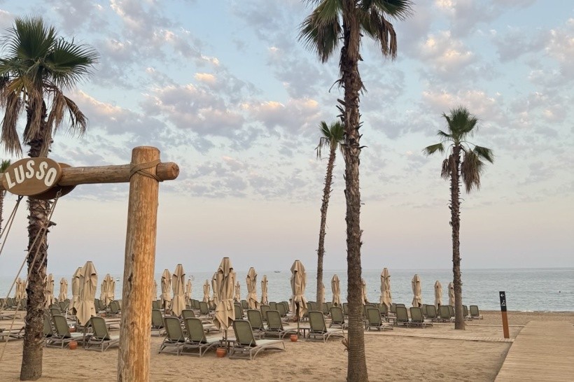Pláž je blízko hotelu. Lehátka jsou k dispozici přímo na písku i na molu. Dostatek místa. Na jedné straně mola je vstup do moře písčitý a oblázkový, zatímco na druhé straně je písek, ideální pro chůzi naboso. Ručníky jsou k dispozici u vstupu na pláž s kartou a kartu dostanete zpět při vrácení ručníku. Na pláži i u bazénů jsou stánky s občerstvením a bar. Všechno je blízko.